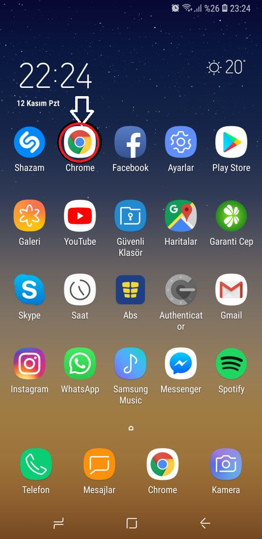 Android cihazınızdan Chrome Uygulamasını Açınız.