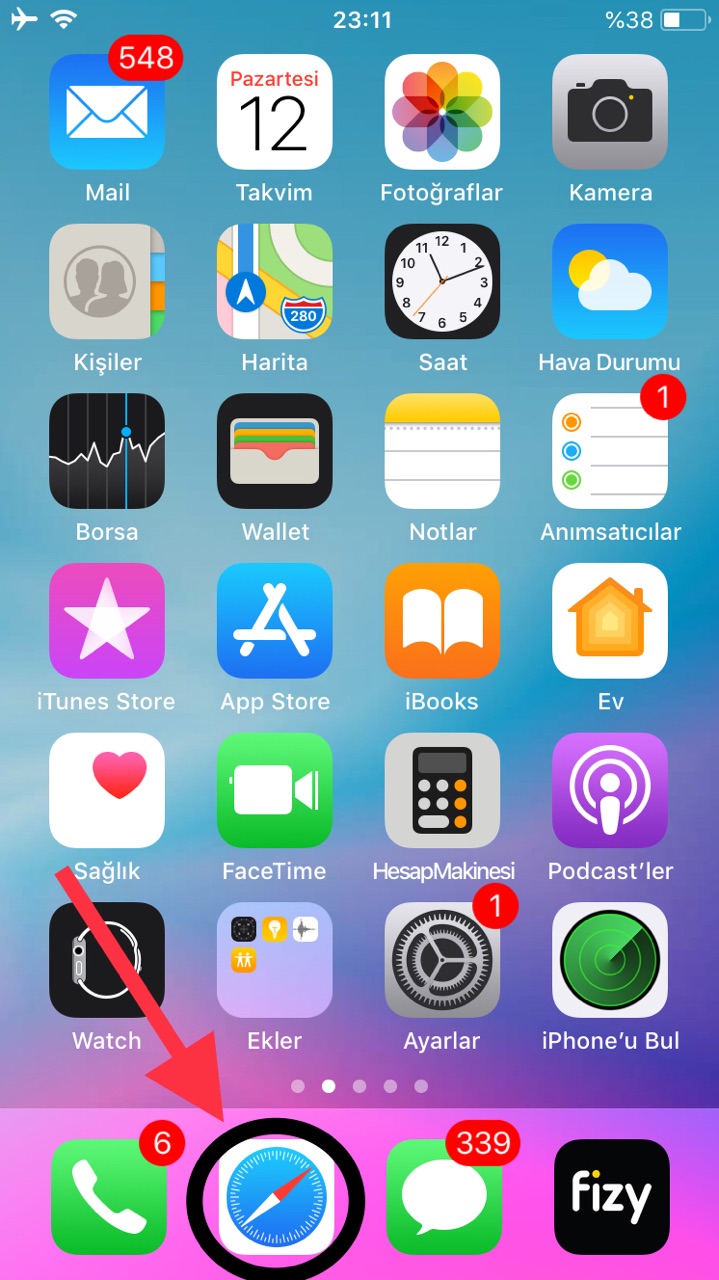 iPhone cihazınızdan Safari Uygulamasını Açınız.