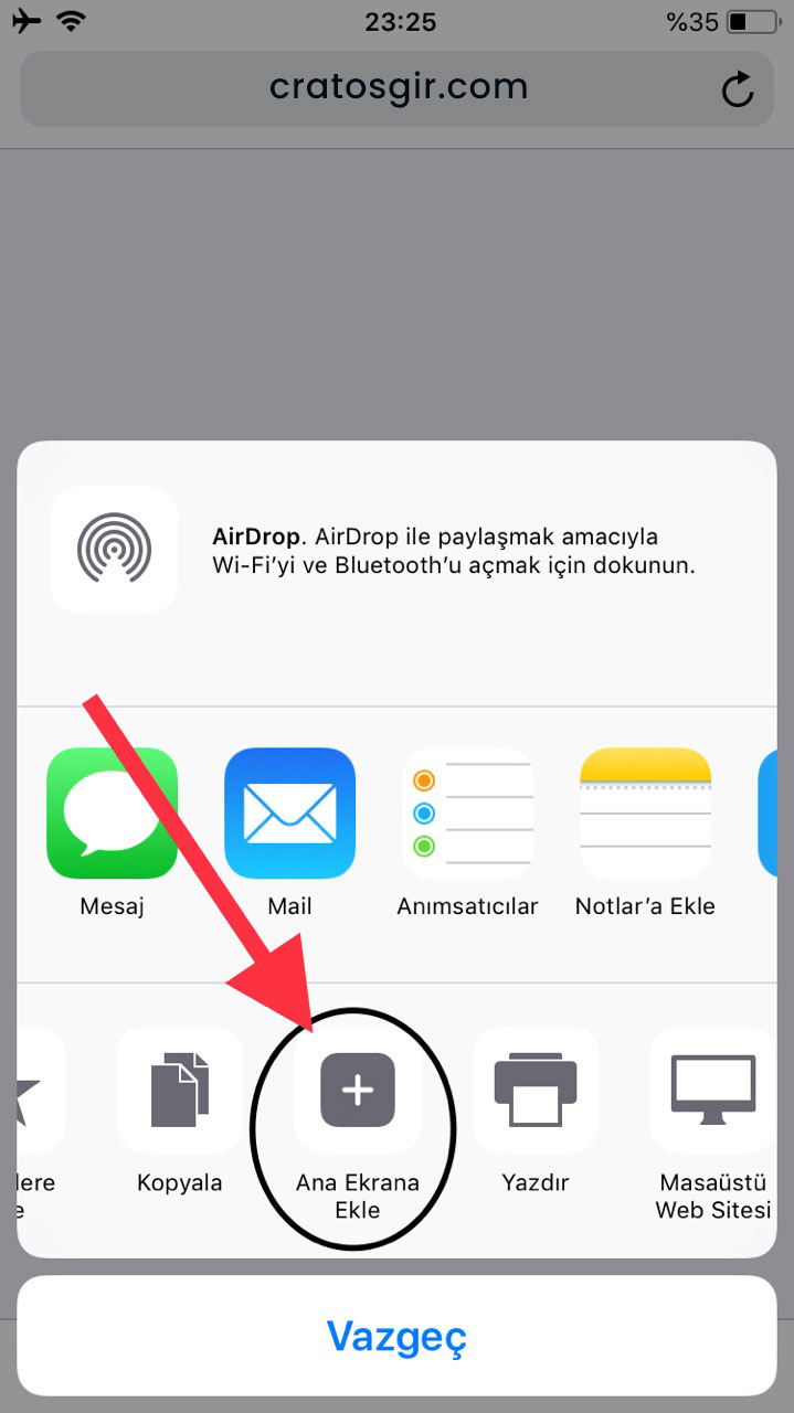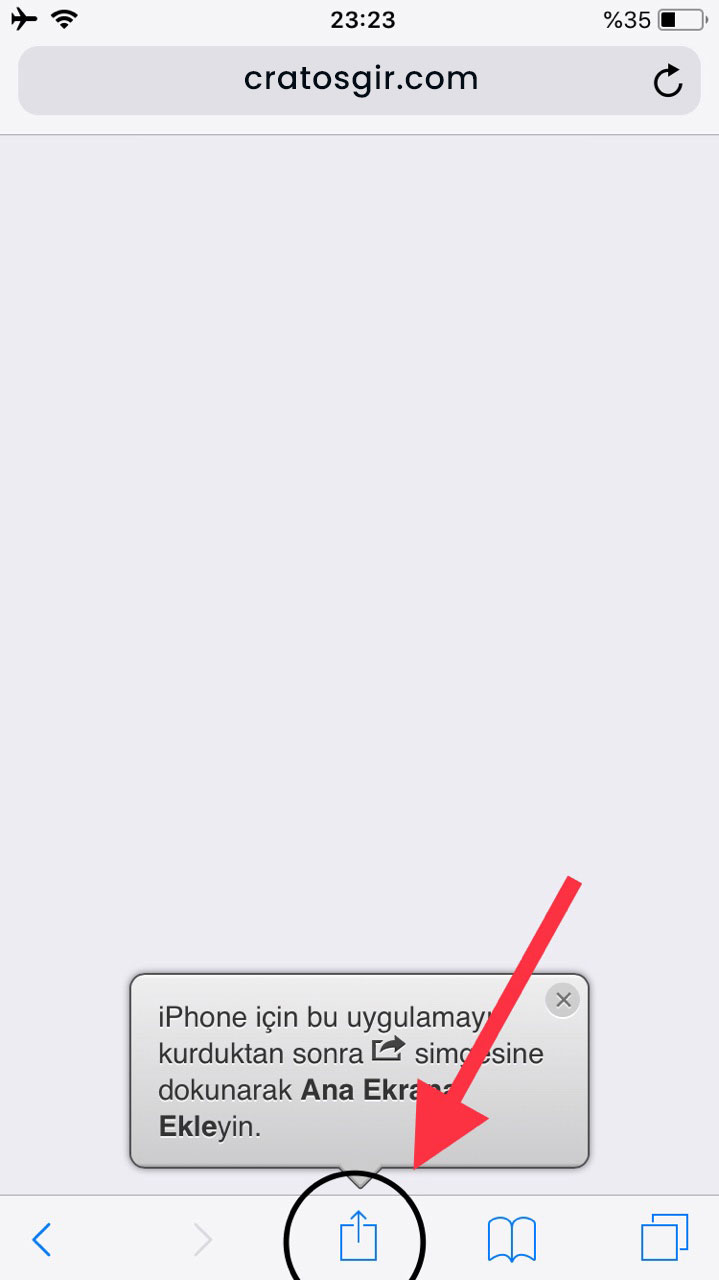 Açılan adreste İOS için "Paylaş" butonuna basın.