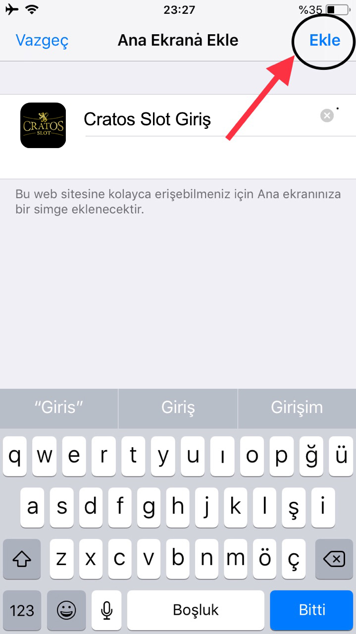 Gelen ekranda bulunan "Ekle" butonuna basın.
